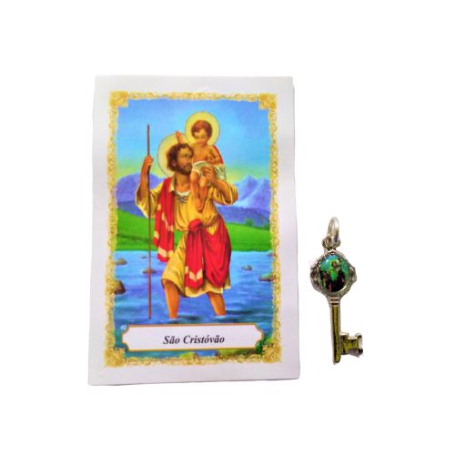 Folheto com Oração e Pingente Chave - São Cristóvão - A Dúzia - Cód. 8111
