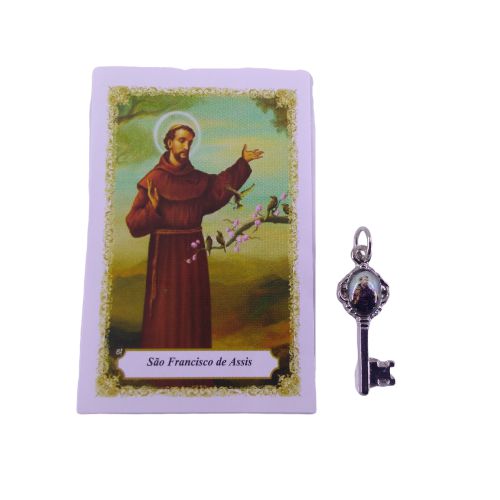 Folheto com Oração e Pingente Chave - São Francisco de Assis - A Dúzia - Cód. 8111