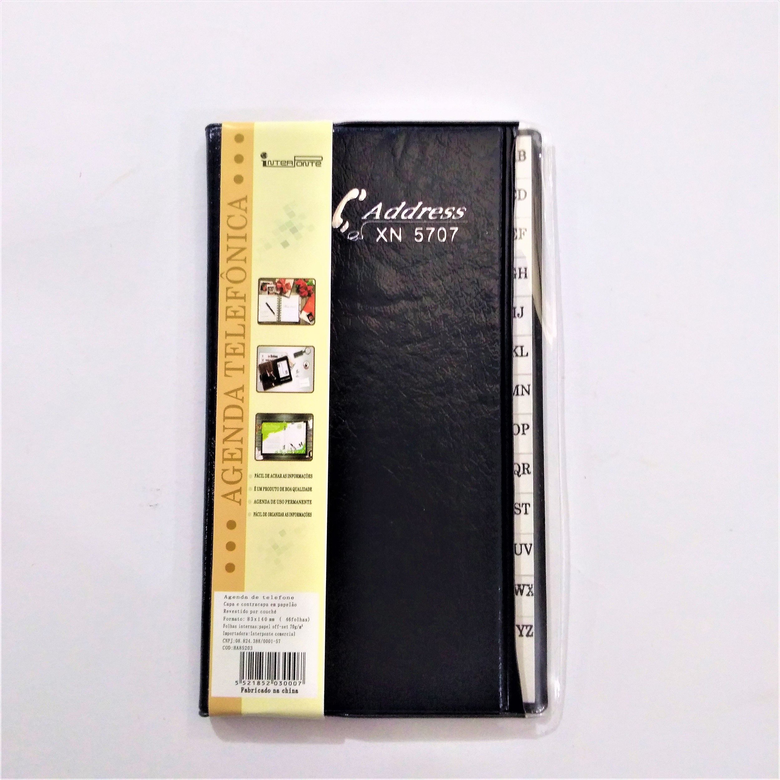 Agenda telefônica. -Capa e contracapa em papelão. -Revestido por couché -83 x 140 mm -46 folhas