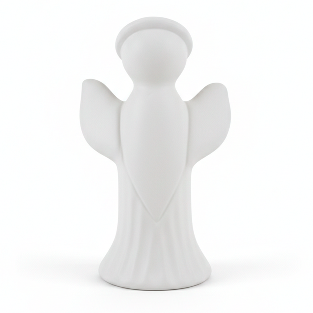 Estatueta decorativa em cerâmica com 21,5 cm de altura por 13 cm de largura.