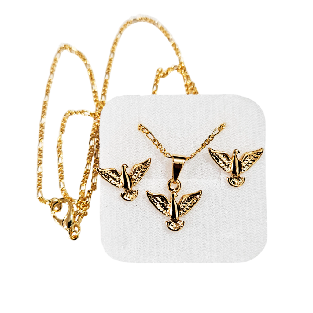 Conjunto contendo par de brincos e corrente de 45 cm. Anjos com Zircônia.